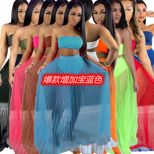 Women Lace Mesh Maxi 3 PCs Skirt Set