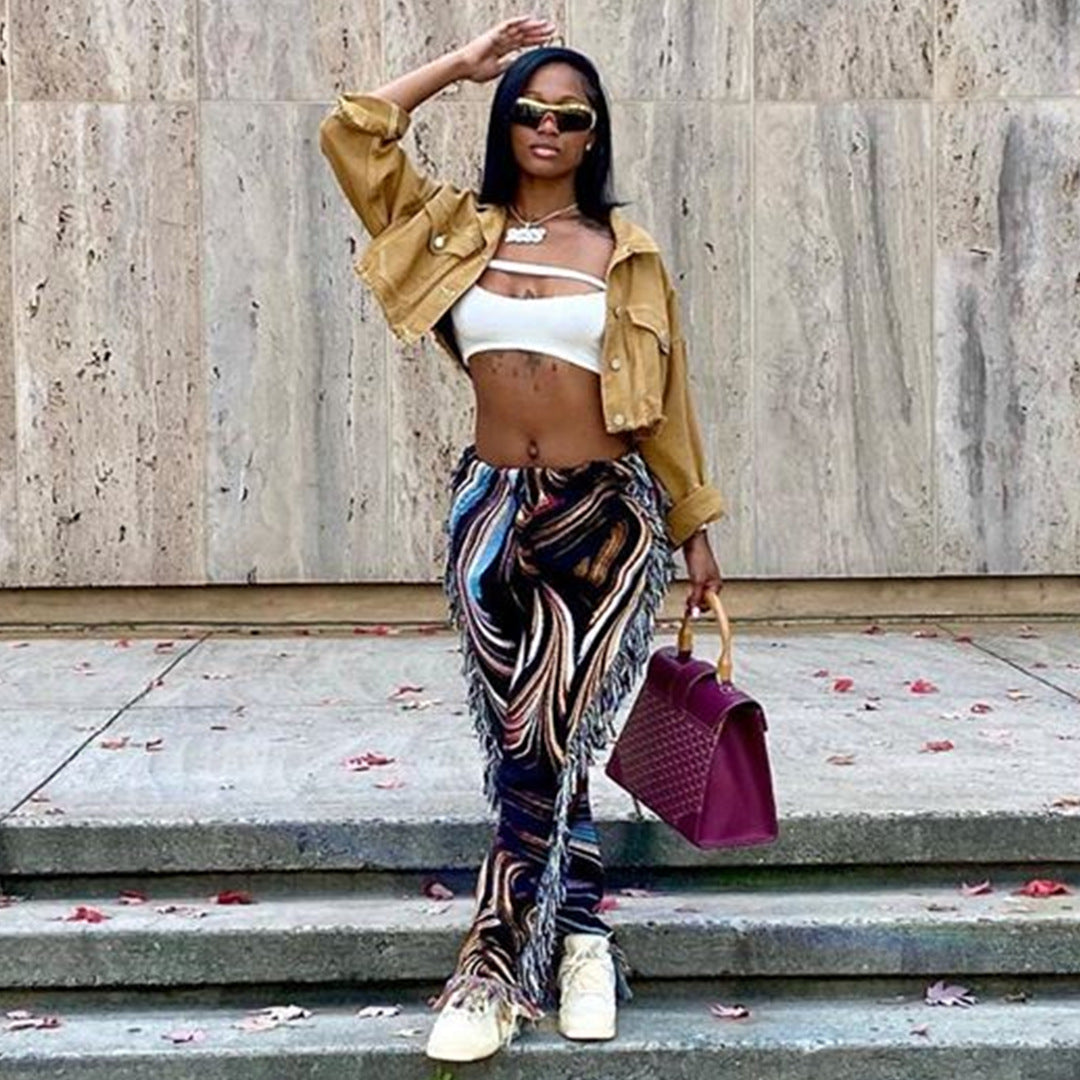 Colorful Pattern Fringe Pants
