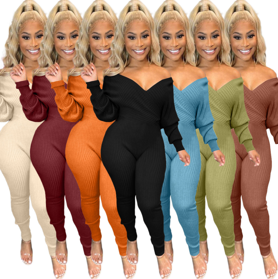 V Neck Jumpsuit Cotton Blended